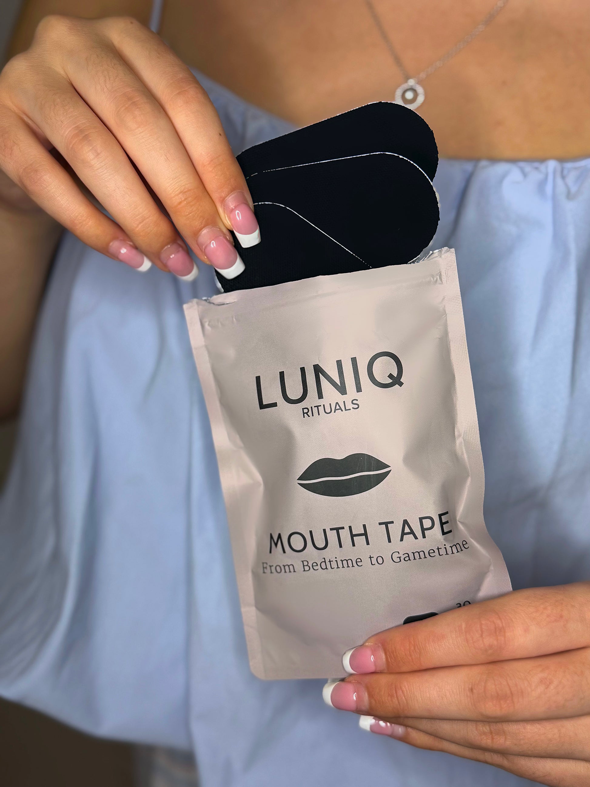 Naš trak za usta pomaga ohranjati ustnice zaprte med spanjem ali med telesno aktivnostjo.
